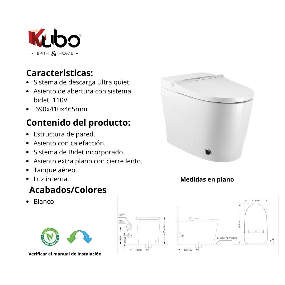 W.C. inteligente con asiento abertura automática y bidet + control remoto (110v)